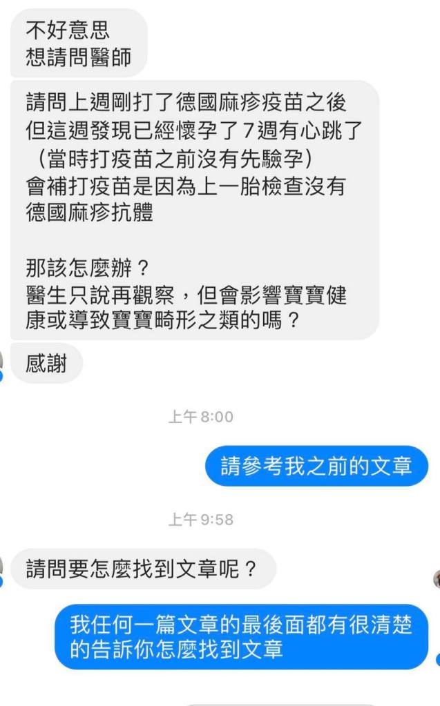 關於在孕期施打德國麻疹疫苗的問題真的之前都說明過了