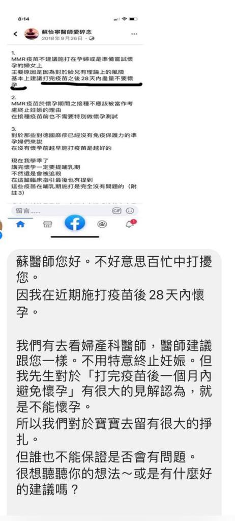 但我先生對於「打完疫苗後一個月內避免懷孕」有很大的見解認為,