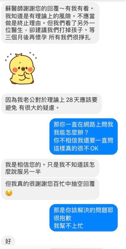 我們有去看婦產科醫師,醫師建議跟您一樣。