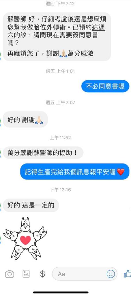 想請教1.膝胸臥式有用嗎?2.若是膝胸臥式沒用,我再網路上有看到您之前協助二寶媽成功的翻轉胎位的文章,讓我也想試試,不知道您是否願意協助?