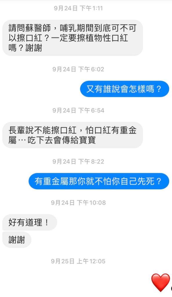 長輩說不能擦口紅,怕口紅有重金屬⋯吃下去會傳給寶寶