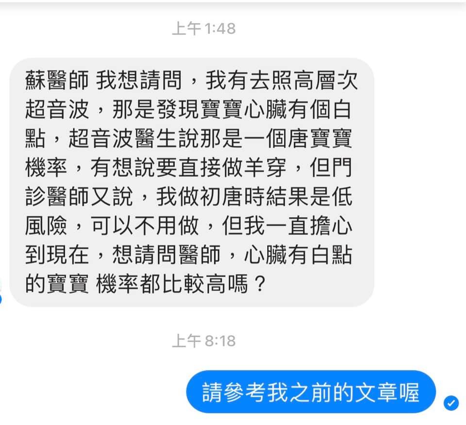 蘇醫師 我想請問,我有去照高層次超音波,那是發現寶寶心臟有個白點,