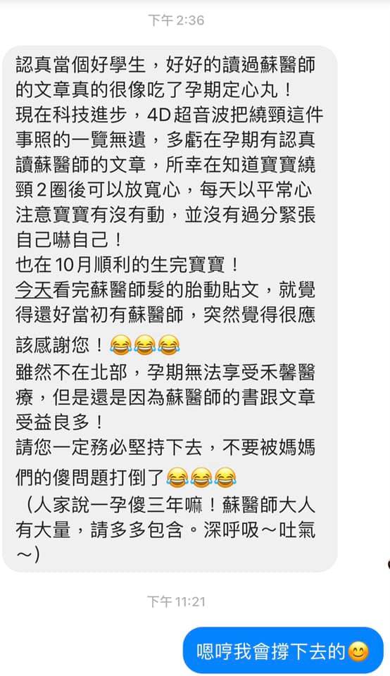 今天看完蘇醫師發的胎動貼文,就覺得還好當初有蘇醫師,突然覺得很應該感謝您!![]()