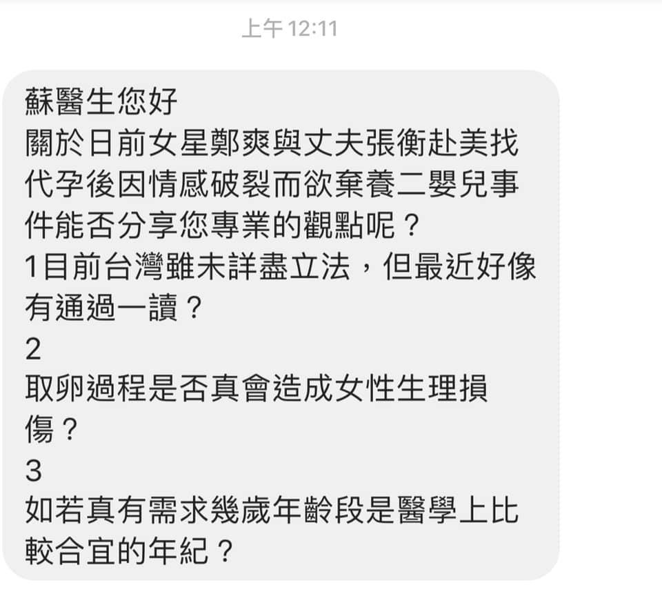 蘇醫生您好關於日前女星鄭爽與丈夫張衡赴美找代孕後因情感破裂而欲棄養二嬰兒事件能否分享您專業的觀點呢?