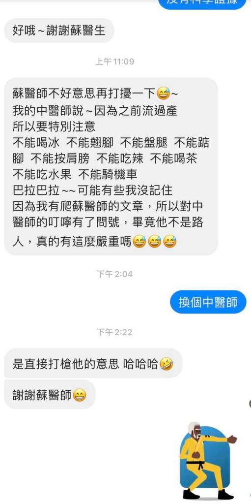 因為我有爬蘇醫師的文章,所以對中醫師的叮嚀有了問號,畢竟他不是路人,真的有這麼嚴重嗎![]()