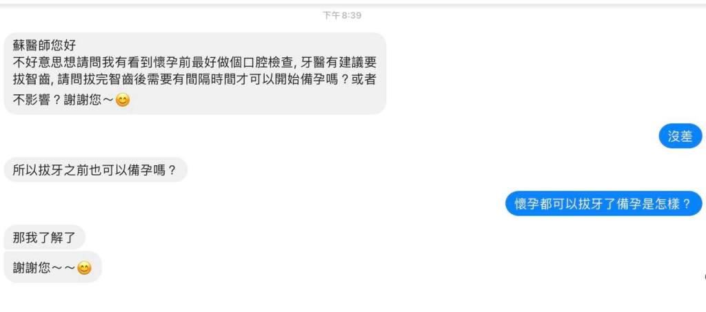 請問拔完智齒後需要有間隔時間才可以開始備孕嗎?或者不影響?謝謝您~![]()