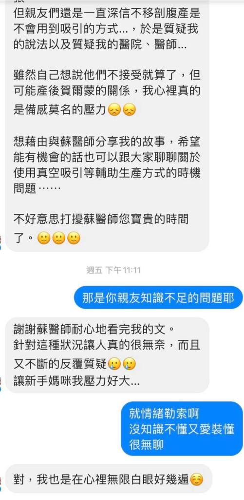 想藉由與蘇醫師分享我的故事,希望能有機會的話也可以跟大家聊聊關於使用真空吸引等輔助生產方式的時機問題⋯⋯