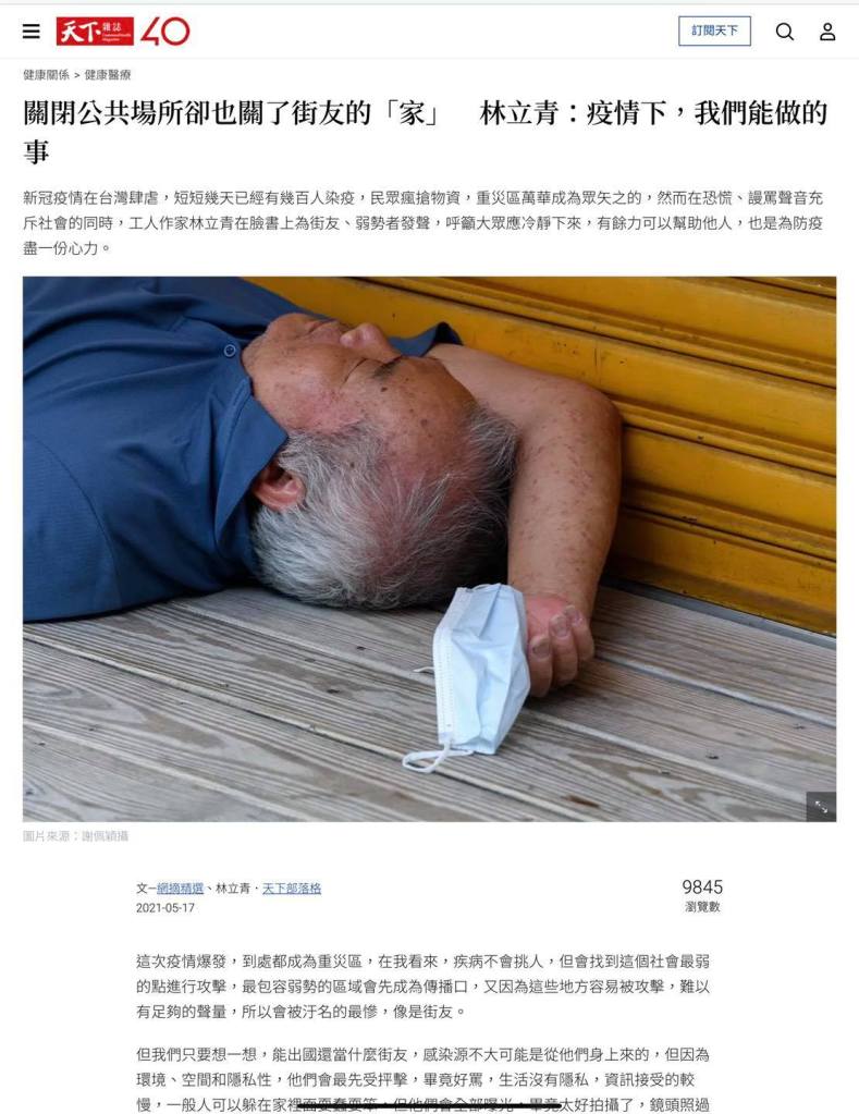 關閉公共場所卻也關了街友的「家」 林立青:疫情下,我們能做的事