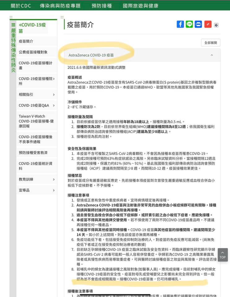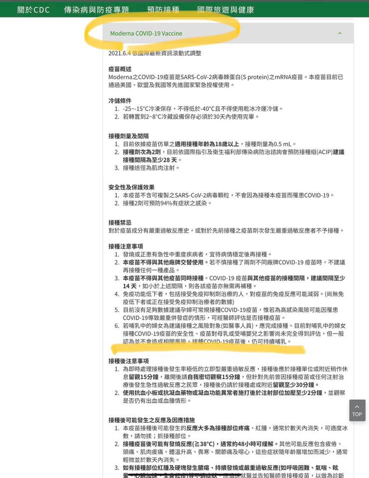 看看台灣CDC關於哺乳中的婦女施打COVID-19 疫苗的臨床建議吧