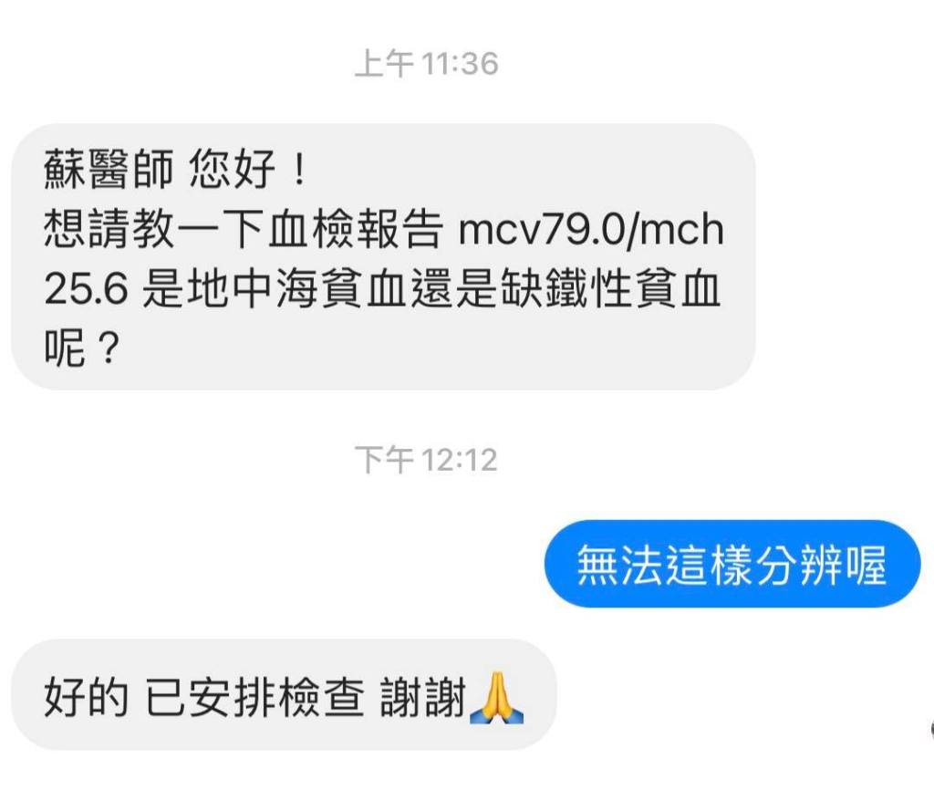 想請教一下血檢報告 mcv79.0/mch 25.6 是地中海貧血還是缺鐵性貧血呢?