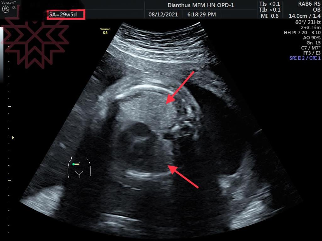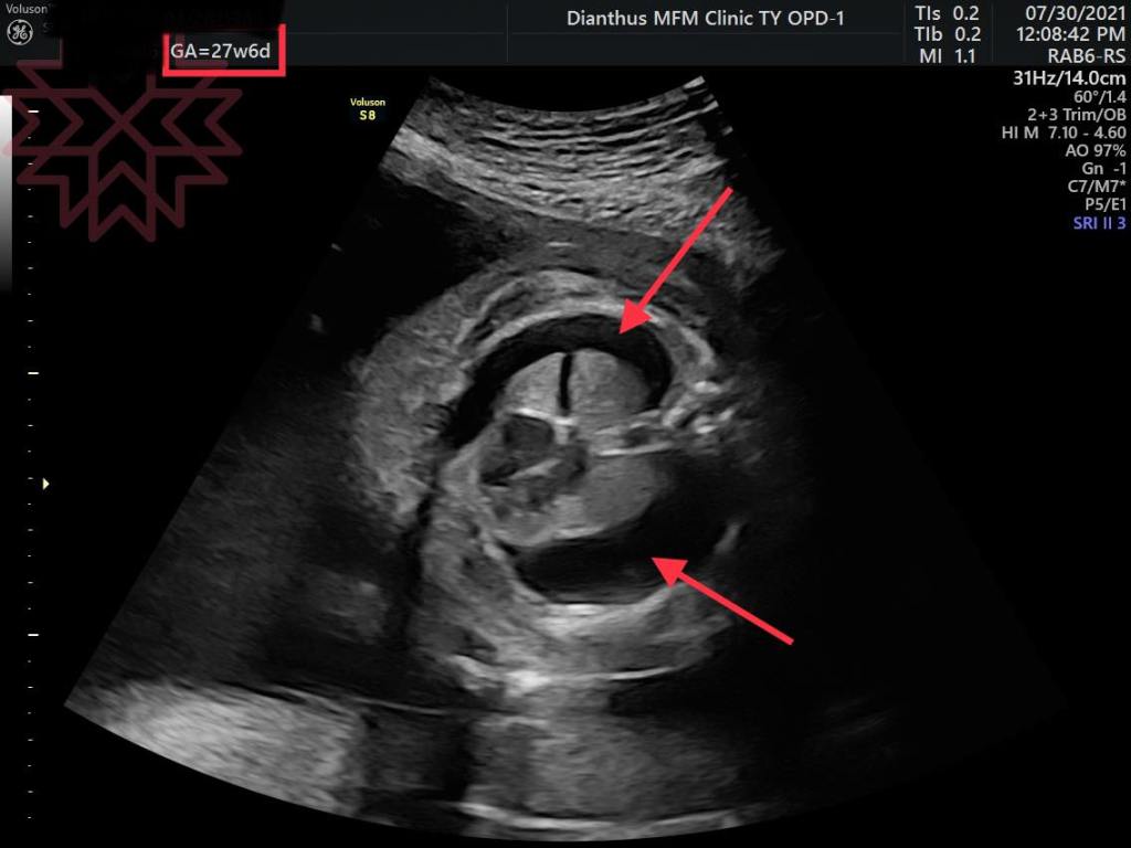 第一張超音波是27周媽咪剛來我門診時候的影像