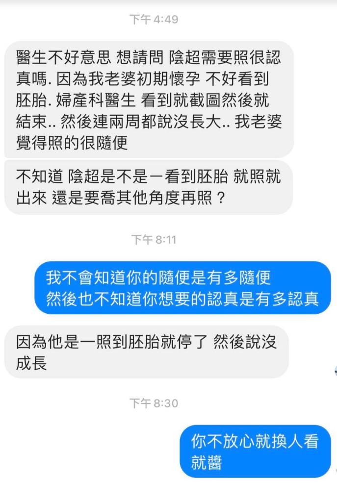 婦產科醫生 看到就截圖然後就結束.. 然後連兩周都說沒長大.. 我老婆覺得照的很隨便