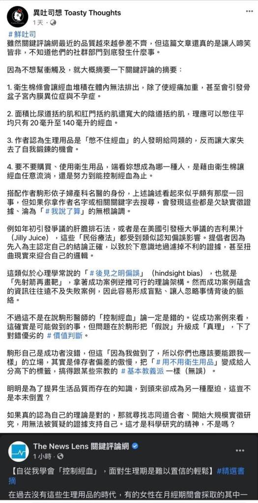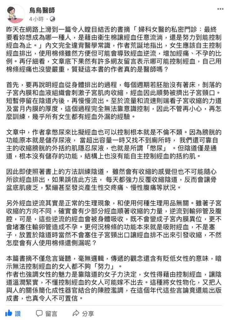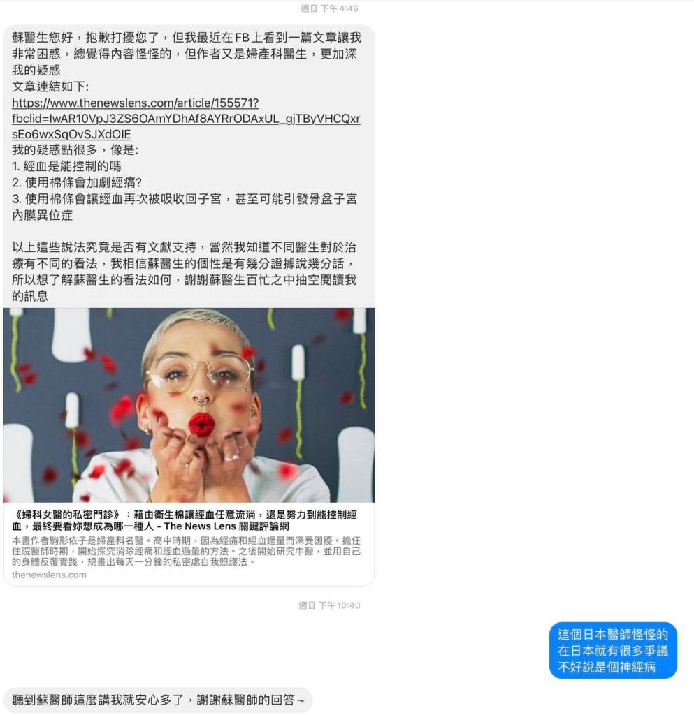 蘇醫生您好,抱歉打擾您了,但我最近在FB上看到一篇文章讓我非常困惑,總覺得內容怪怪的,但作者又是婦產科醫生,更加深我的疑惑