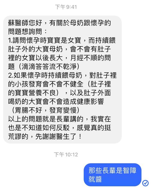 蘇醫師您好,有關於母奶跟懷孕的問題想詢問: