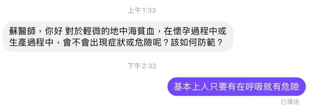 蘇醫師,你好 對於輕微的地中海貧血,在懷孕過程中或生產過程中,會不會出現症狀或危險呢?該如何防範?