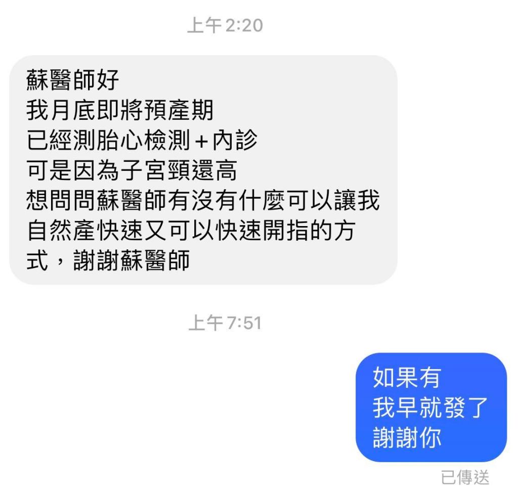 想問問蘇醫師有沒有什麼可以讓我自然產快速又可以快速開指的方式,謝謝蘇醫師