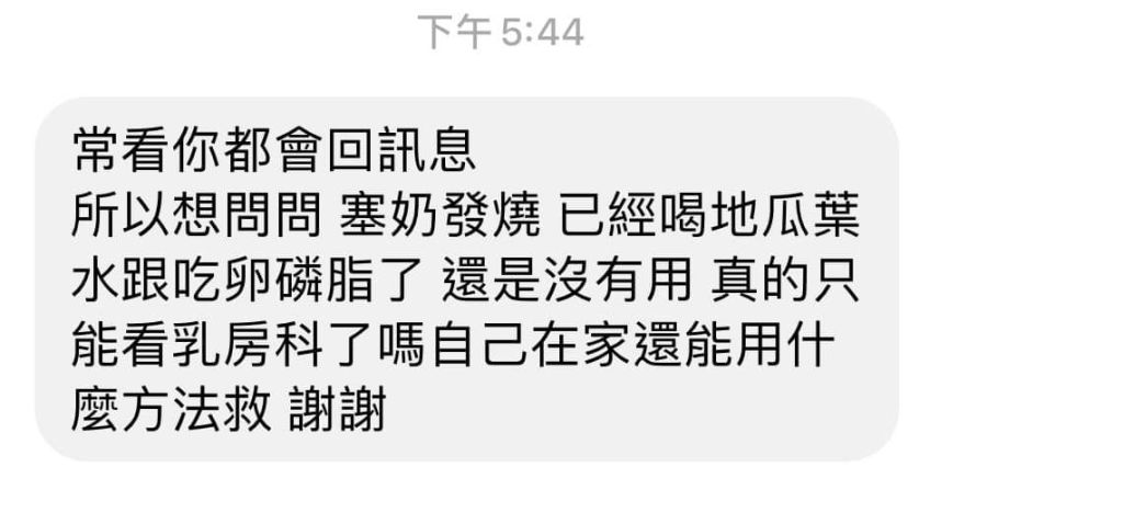 所以想問問 塞奶發燒 已經喝地瓜葉水跟吃卵磷脂了 還是沒有用 真的只能看乳房科了嗎自己在家還能用什麼方法救 謝謝