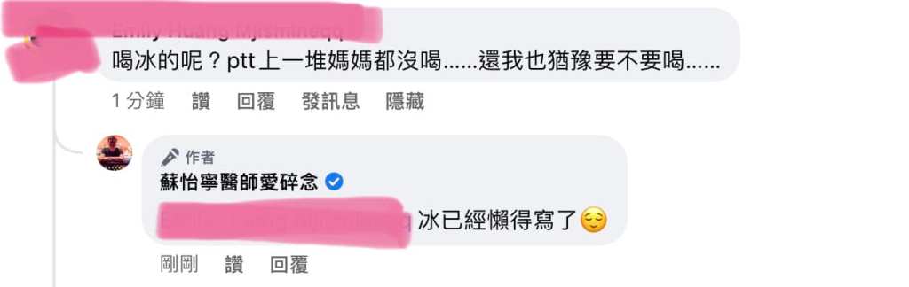 喝冰的呢? 喝冰的呢? 在昨天的坐月子迷思 留言區有媽咪發問 PTT上的都沒喝? 之前都說是社團媽媽還是家裡長輩還是菜市場的阿姨說的 今天是PTT 嗯嗯 好喔 冰 又來 來啊來啊你來 我等你(深呼吸(握拳 新同學我們有目錄請動動手指頭滑一下參考置頂文 然後 請善用搜尋功能 所有文章我都也有放在部落格 請google搜尋 蘇怡寧醫師愛碎念 或是 蘇醫師愛碎念 或者 好像打蘇醫師就會跑出來 你試試 然後 請善用裡面的搜尋功能 本日關鍵字 冰 很簡單的FB原文討論串 分享此文: 按一下即可分享至 X(在新視窗中開啟) X 按一下以分享至 Facebook(在新視窗中開啟) Facebook 喜歡 正在載入... 相關 發表留言 取消回覆 Δ