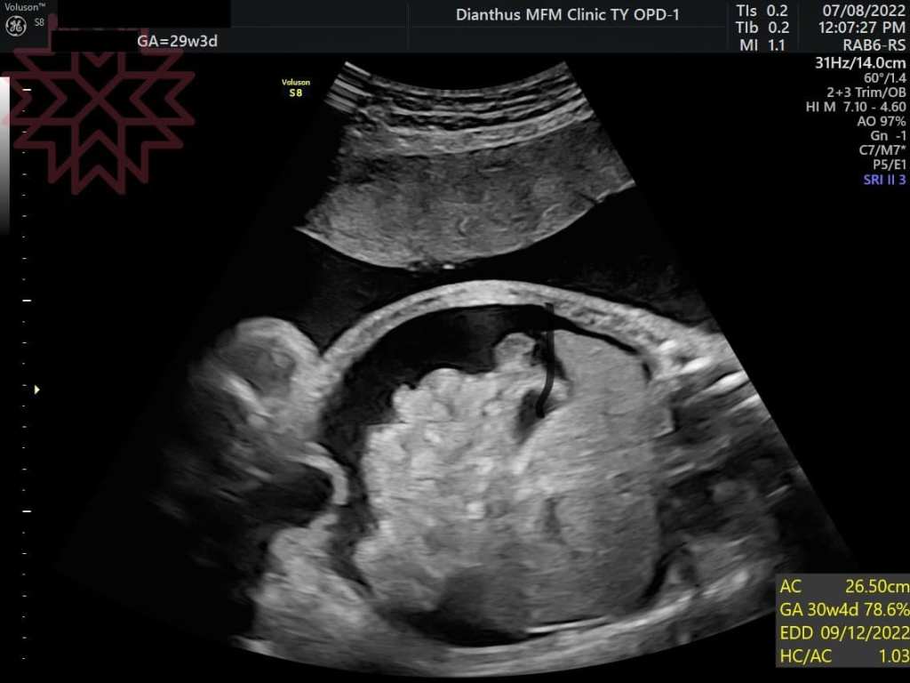 開始有腹水及胎兒水腫的狀態(如圖)(細節就不說了)