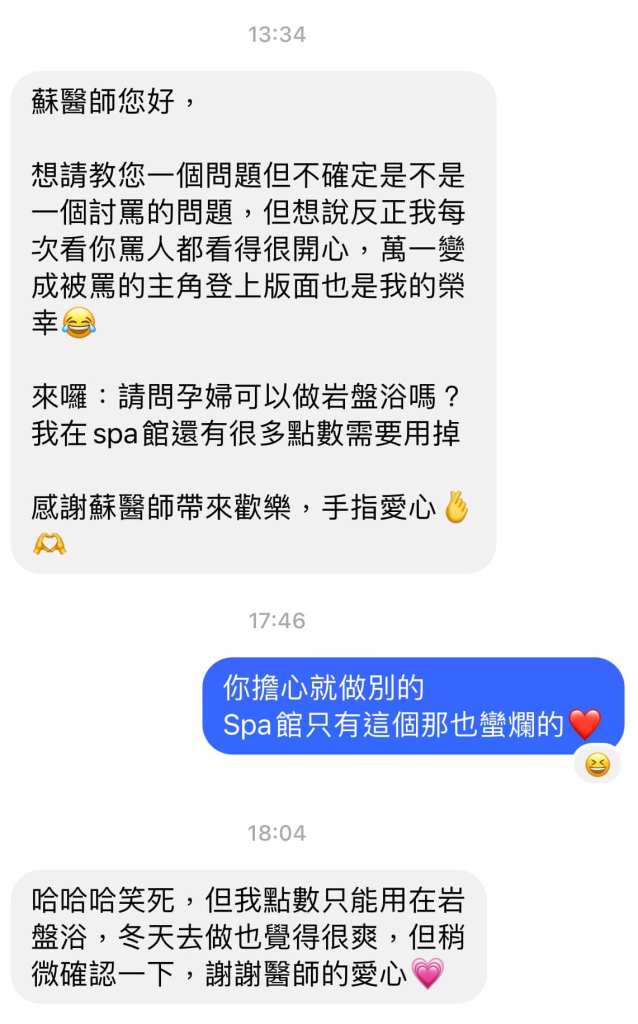 孕婦可以做岩盤浴嗎 孕婦可以做岩盤浴嗎 其實之前這種觀念都聊過很多次了喔 不過 沒有人要罵你吧 我這麼兇喔 重點就在 量力而為 你沒有不舒服就好 跟泡溫泉很像 再次溫馨提醒 人類是恆溫動物喔 啾咪 ================== 新同學我們有目錄請動動手指頭滑一下參考置頂文 然後 請善用搜尋功能 所有文章我都也有放在部落格 請google搜尋⋯⋯ 蘇怡寧醫師愛碎念 或是 蘇醫師愛碎念 或者 好像打蘇醫師就會跑出來 你試試 然後 請善用裡面的搜尋功能 本日關鍵字 泡溫泉 就醬FB原文討論串 分享此文: 按一下即可分享至 X(在新視窗中開啟) X 按一下以分享至 Facebook(在新視窗中開啟) Facebook 喜歡 正在載入... 相關 發表留言 取消回覆 Δ