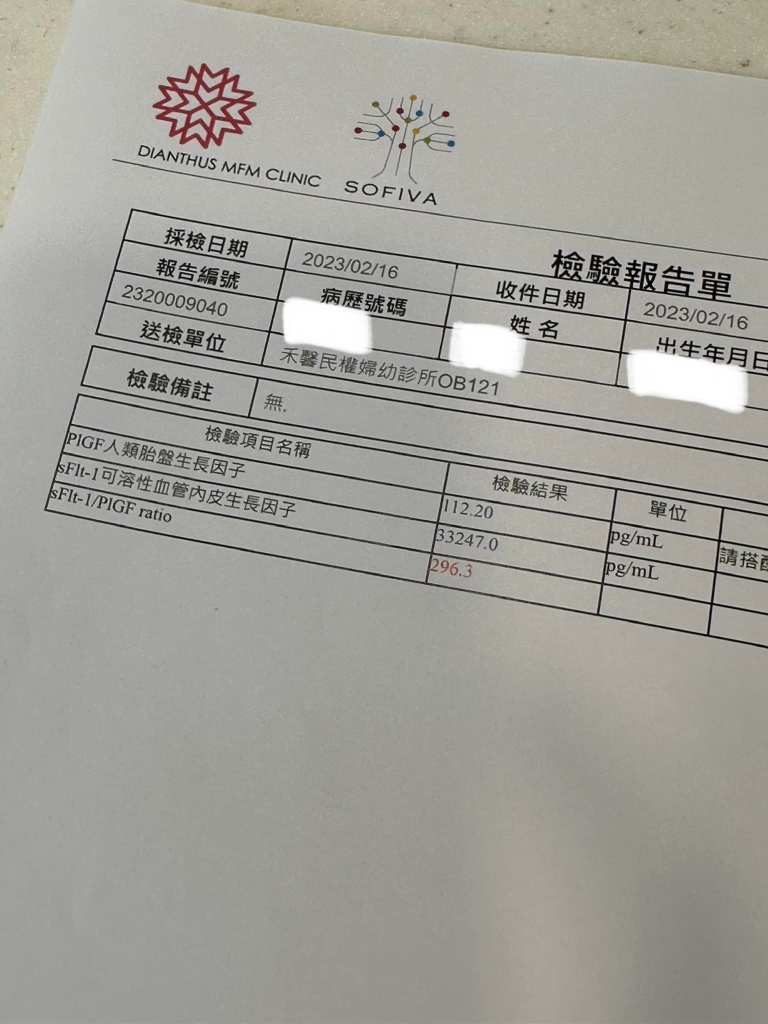 請她立刻去抽血進行中晚期子癇前症檢測(sFlt1/PlGF)