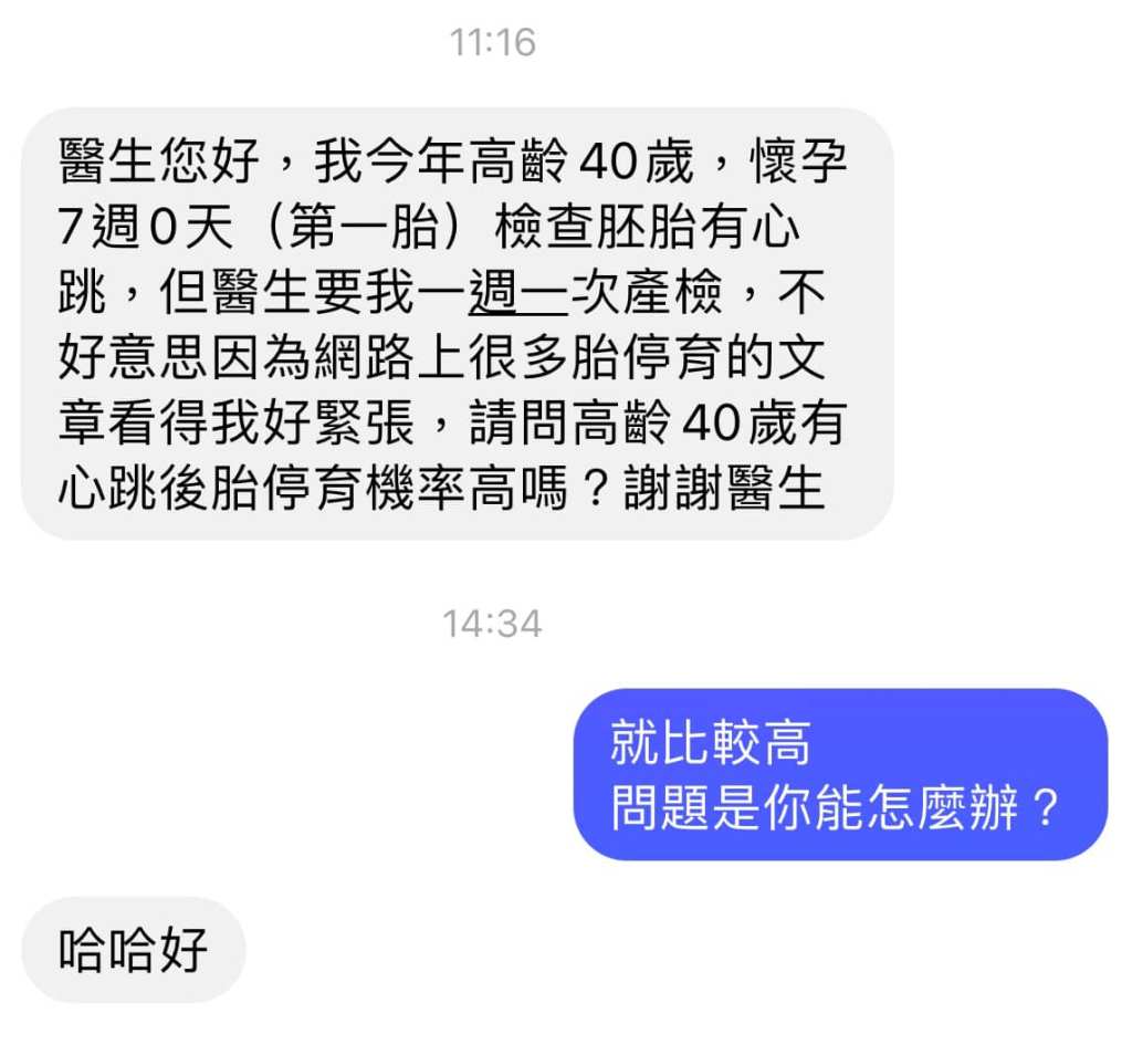 關於胚胎萎縮 關於胚胎萎縮 統計上 在12週以前 隨著年齡的增加 胚胎萎縮的機率會從1/5一直上升到1/3 人生就醬 不要去擔心你無法改變的事情 好嗎 加油FB原文討論串 分享此文: 分享到 X(在新視窗中開啟) X 分享到 Facebook(在新視窗中開啟) Facebook 喜歡 正在載入... 相關 發表留言 取消回覆 Δ