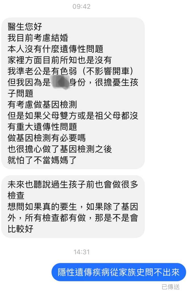 我發現大部分人都已經知道如果有家族病史要找專門的醫師來釐清以避免遺傳性的問題