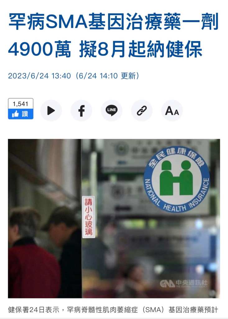 健保給付治療一劑需要四千九百萬