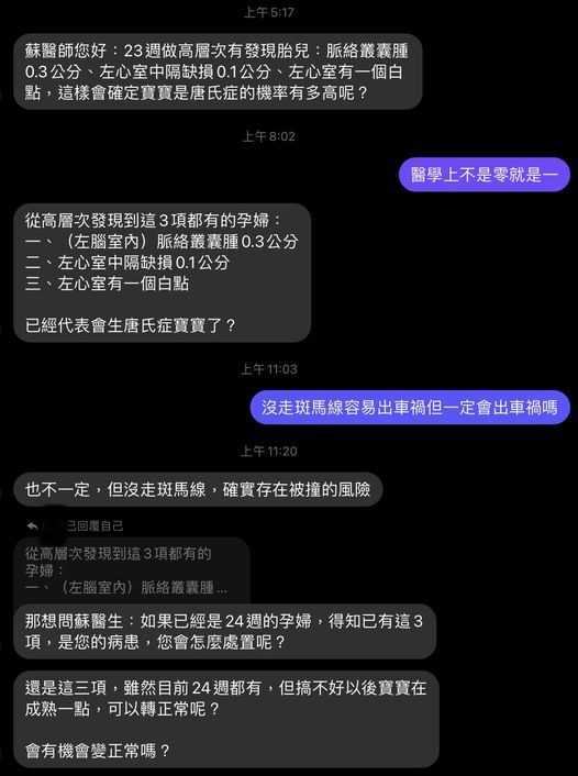 這個訊息裡面提到的很多指標其實都不算是真正唐氏症的指標