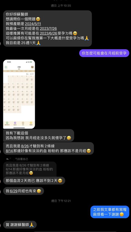 所以你說的最後一次月經日期跟預產期是對不起來的