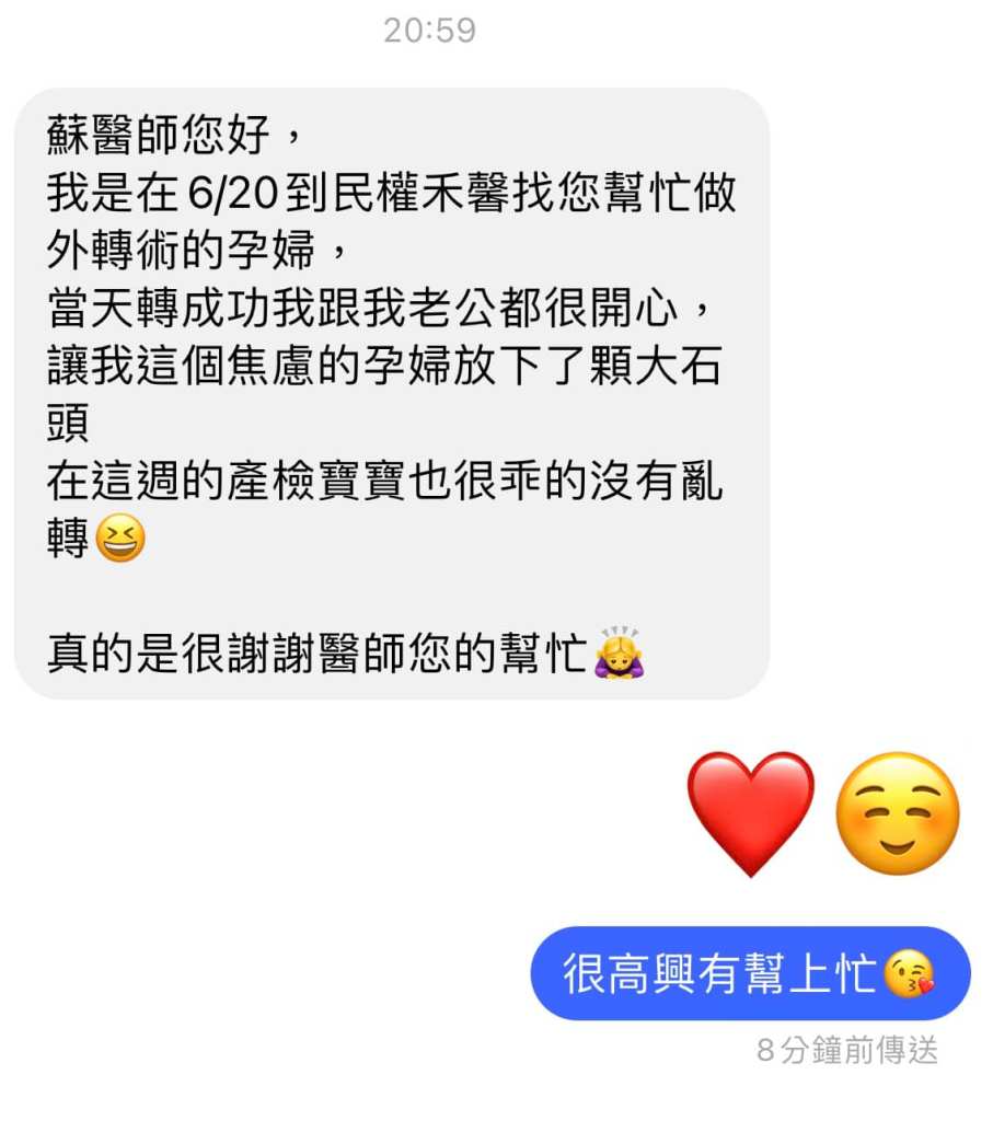 有很多媽咪從遠道而來請我幫忙進行胎位不正外轉術