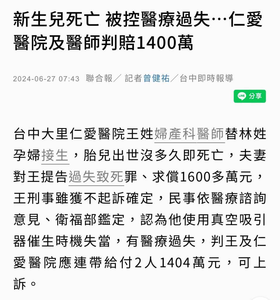 之後我該要求未來要進行外轉術的媽咪先簽1400萬的本票