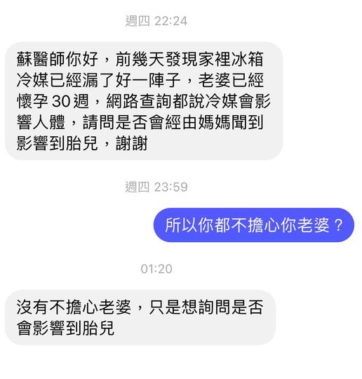 吸到冷媒會不會怎樣 吸到冷媒會不會怎樣 冷媒是化學物質 理論上當然會影響健康 但說過很多次了 這種都不是一句話有影響或沒影響就可以解決的 這種端看你暴露的量有多少 理論上就是越少越好 (這不是廢話? 你查網路水喝多了也會中毒 這種網路都可以輕易查到的知識 你是希望我回答什麼? 還是我能保證什麼? 問題是 我就是覺得你沒有在擔心你老婆 就醬 FB原文討論串 分享此文: 按一下即可分享至 X(在新視窗中開啟) X 按一下以分享至 Facebook(在新視窗中開啟) Facebook 喜歡 正在載入... 相關 在〈吸到冷媒會不會怎樣〉中有 1 則留言 Add yours 引用通告: 蘇醫師愛碎念導覽目錄(置頂文) – 蘇怡寧醫師愛碎念 發表留言 取消回覆 Δ