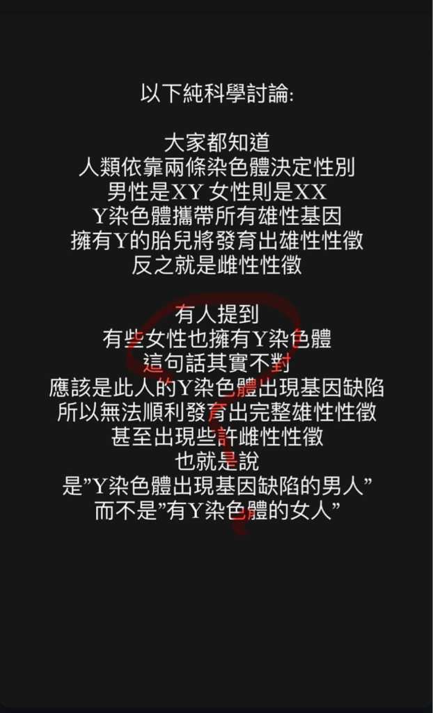 臨床上我們從來不會去定義你基因上是屬於X X或是X Y就來去決定你是女人或是男人