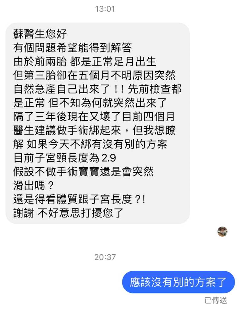 在已經子宮頸鬆脫羊水袋跑出來的情況之下再去做緊急手術常常成功機率會大幅下降
