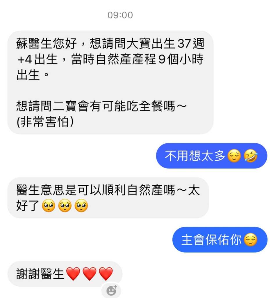 我很好奇地問說難道美國醫師沒有提醒你這種情況要早點催生嗎?