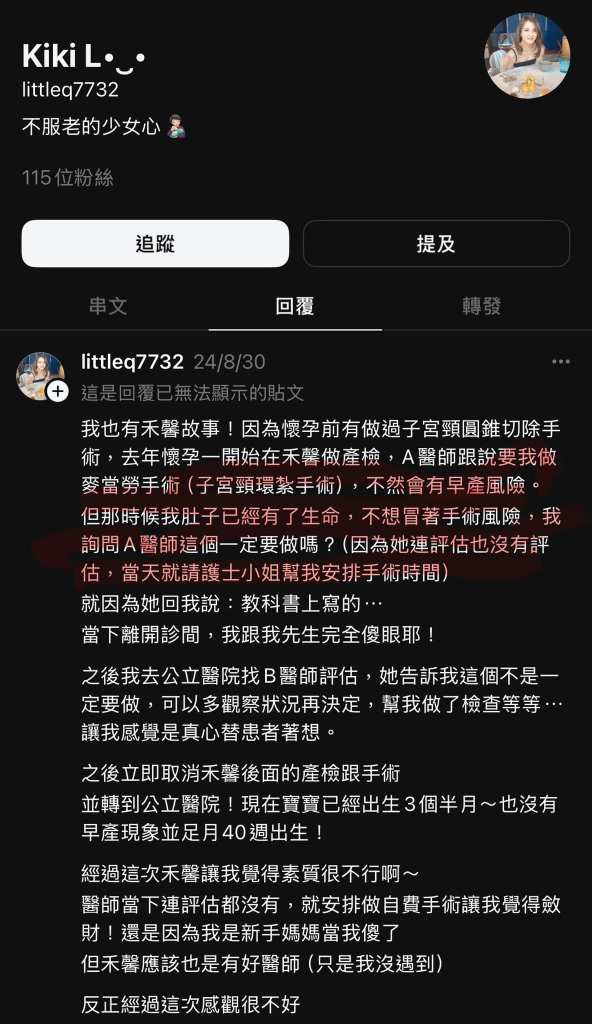 醫師沒有強烈建議一定要做預防性環紮手術所以害我老婆發生了子宮頸閉鎖不全小孩保不住實在有夠無良的爛醫師爛醫院