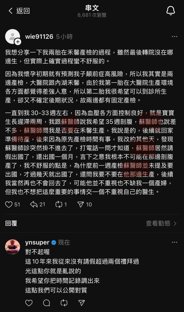 你連你自己的主治醫師都搞不清楚然後你要別人相信你文章所描述的細節?