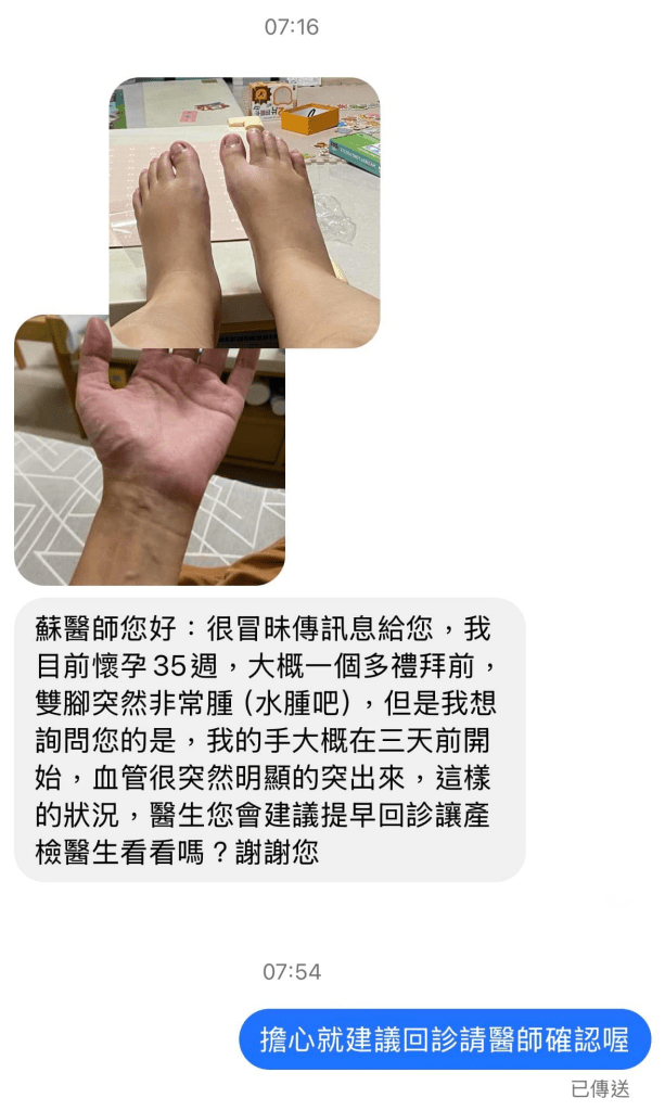 你突然傳訊息說水腫要不要去看醫生?