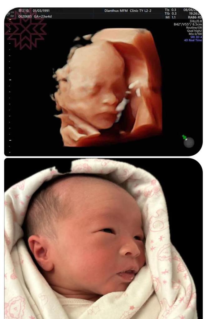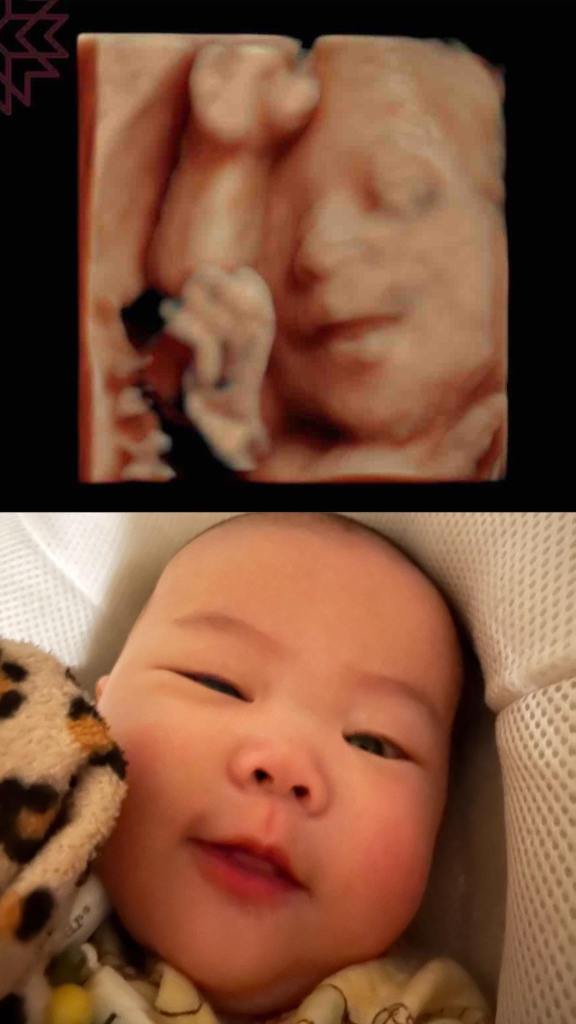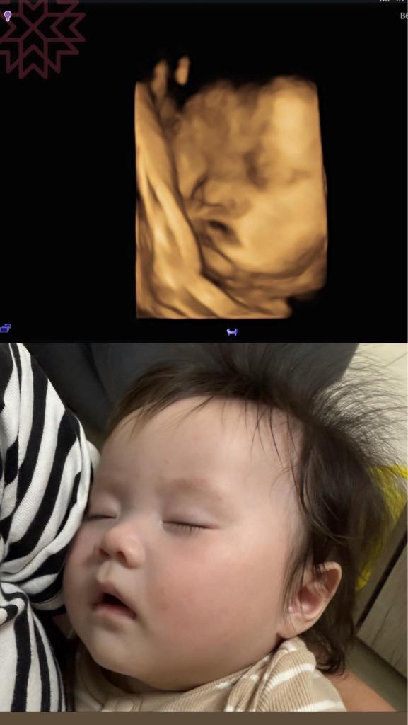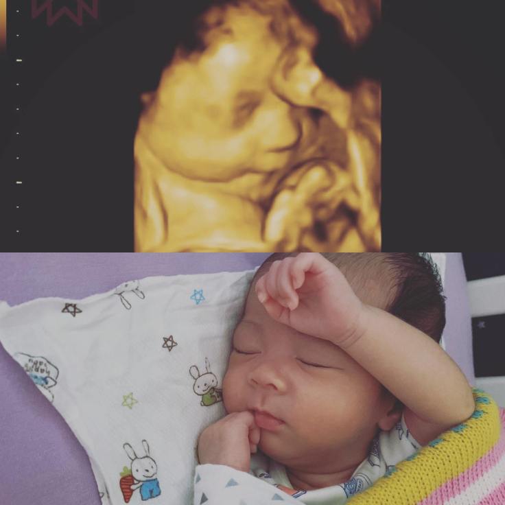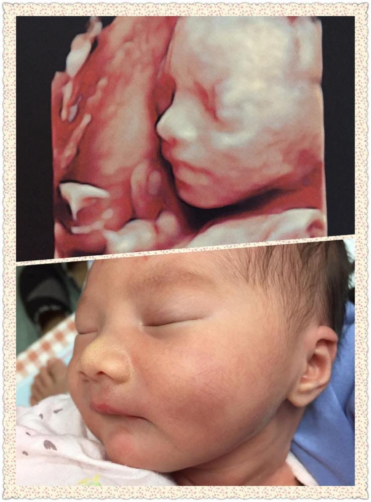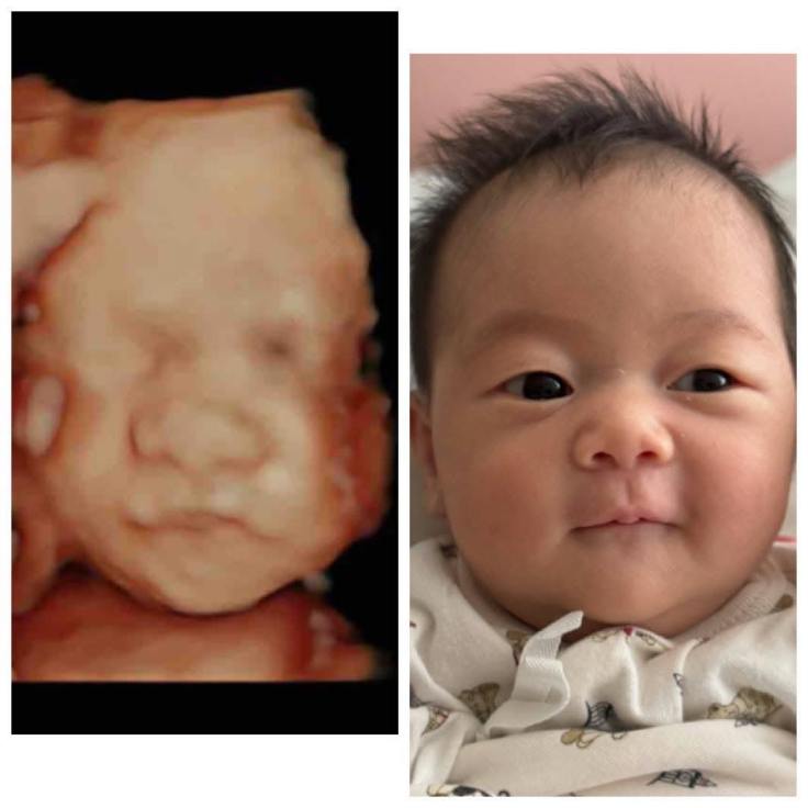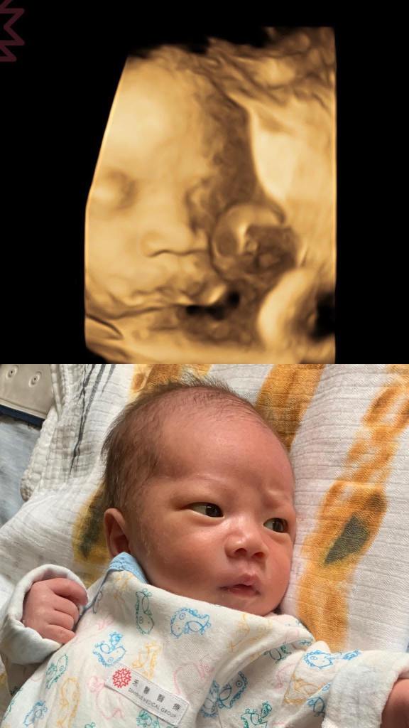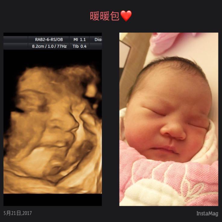Po了第一張寶寶跟產前3D對照之後