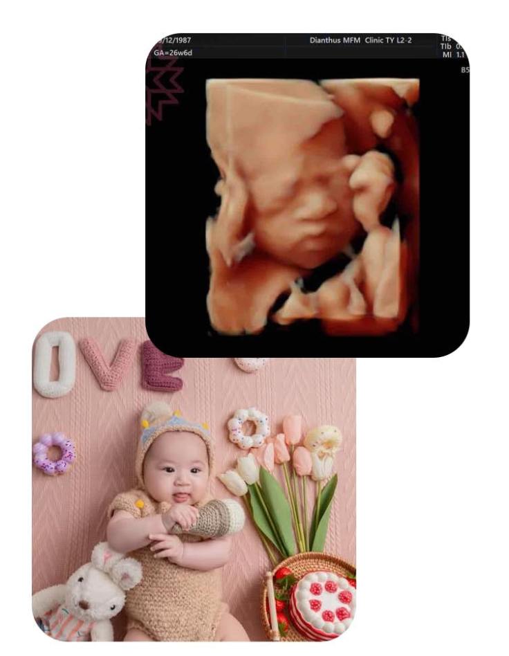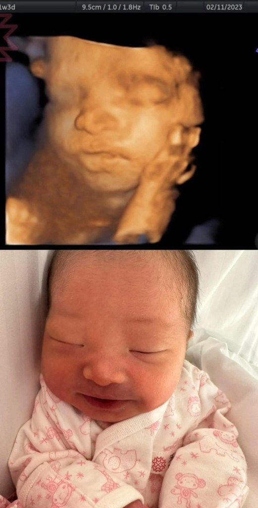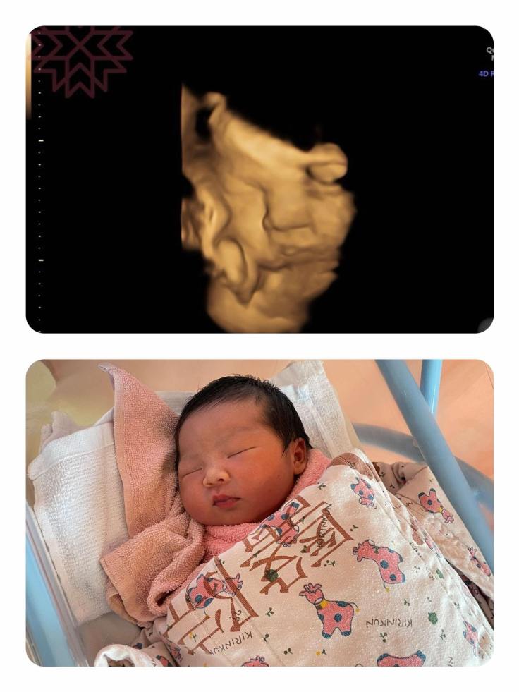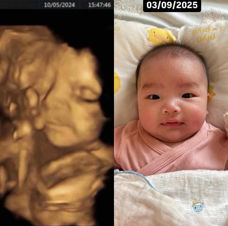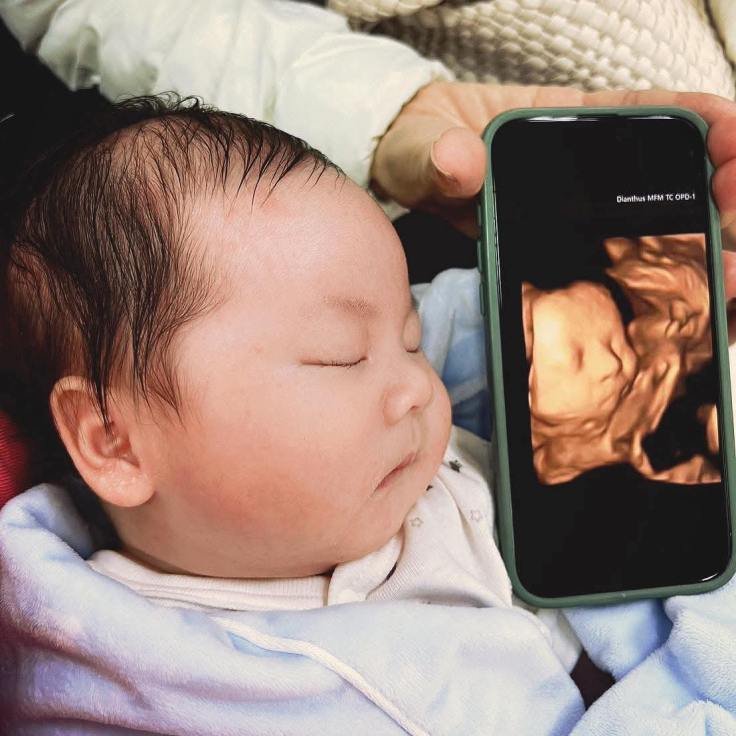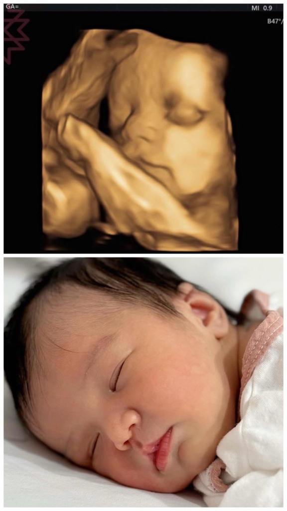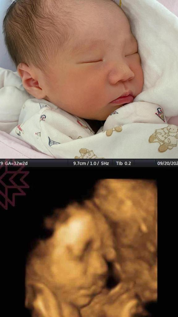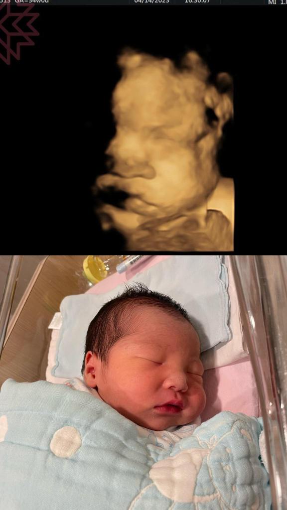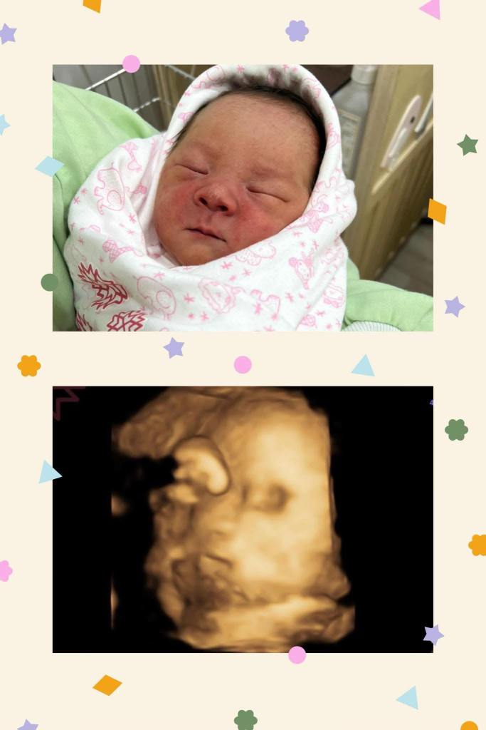 Po了第一張寶寶跟產前3D對照之後