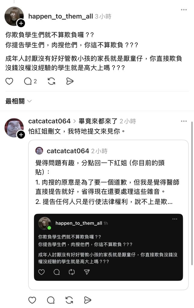 「你提告學生們,肉搜他們,你這不算欺負???」