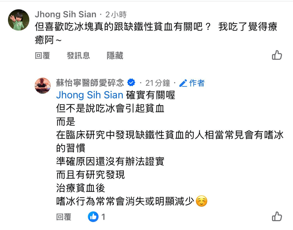 而是說有缺鐵性貧血的人確實常常會喜歡咬冰塊
