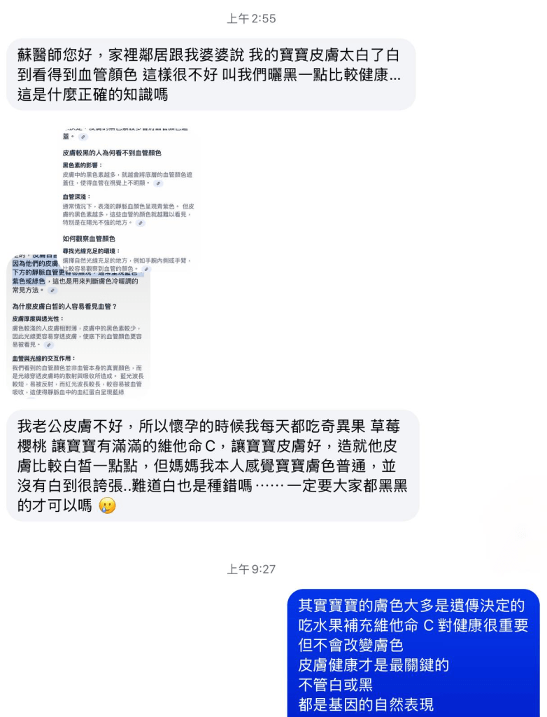 然後出生後又說皮膚太白有毛病一定要去曬黑