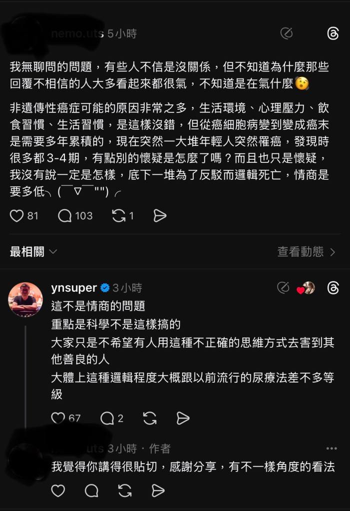 在脆上海巡看到有人在說一些沒有科學根據的話