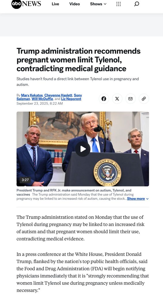 更進一步他把孕期吃普拿疼也拿出來說與自閉症可能有關