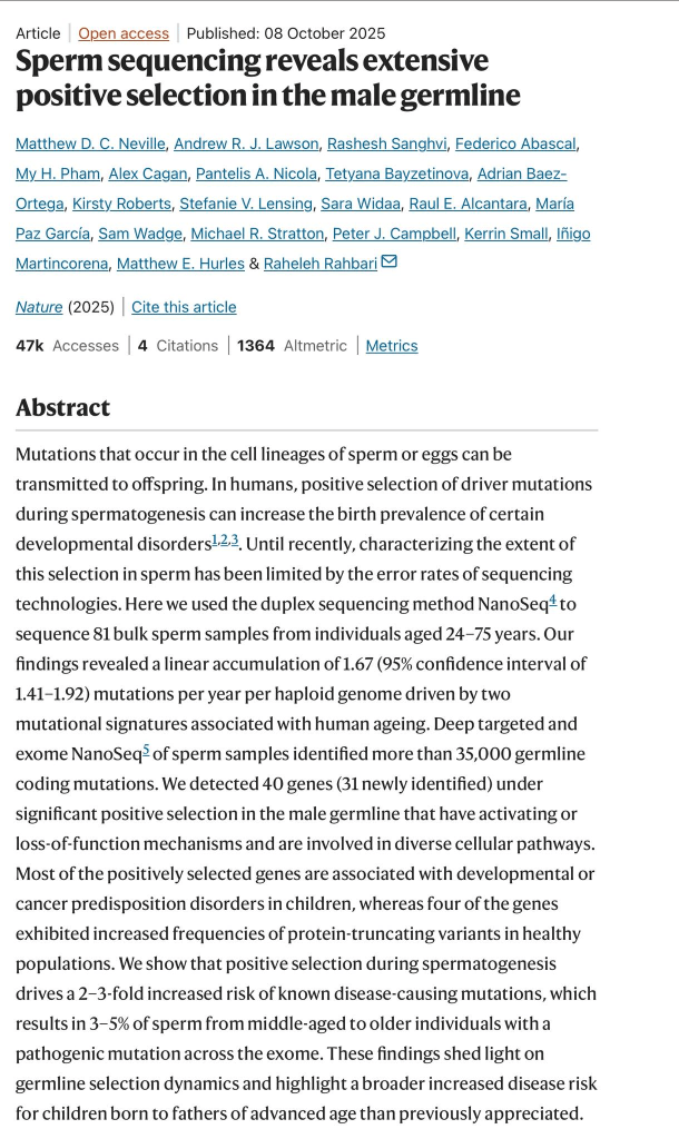 Sperm sequencing reveals extensive positive selection in the male germline.
