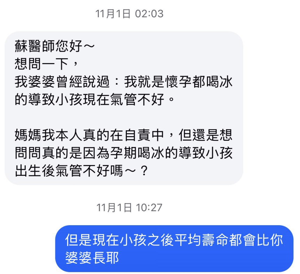 而那些懷孕喝冰導致小孩氣管不好的說法