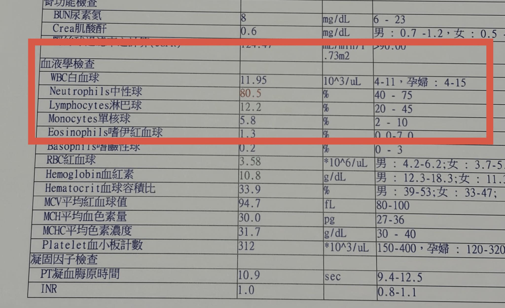發燒咳嗽喉嚨痛解尿不舒服下腹痛分泌物異常或整體數值高得不合理