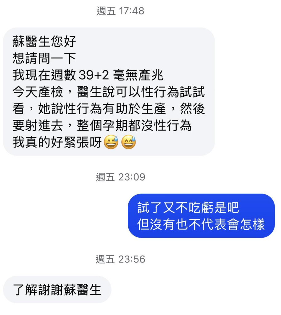 產檢時醫師說可以回家試試看性行為